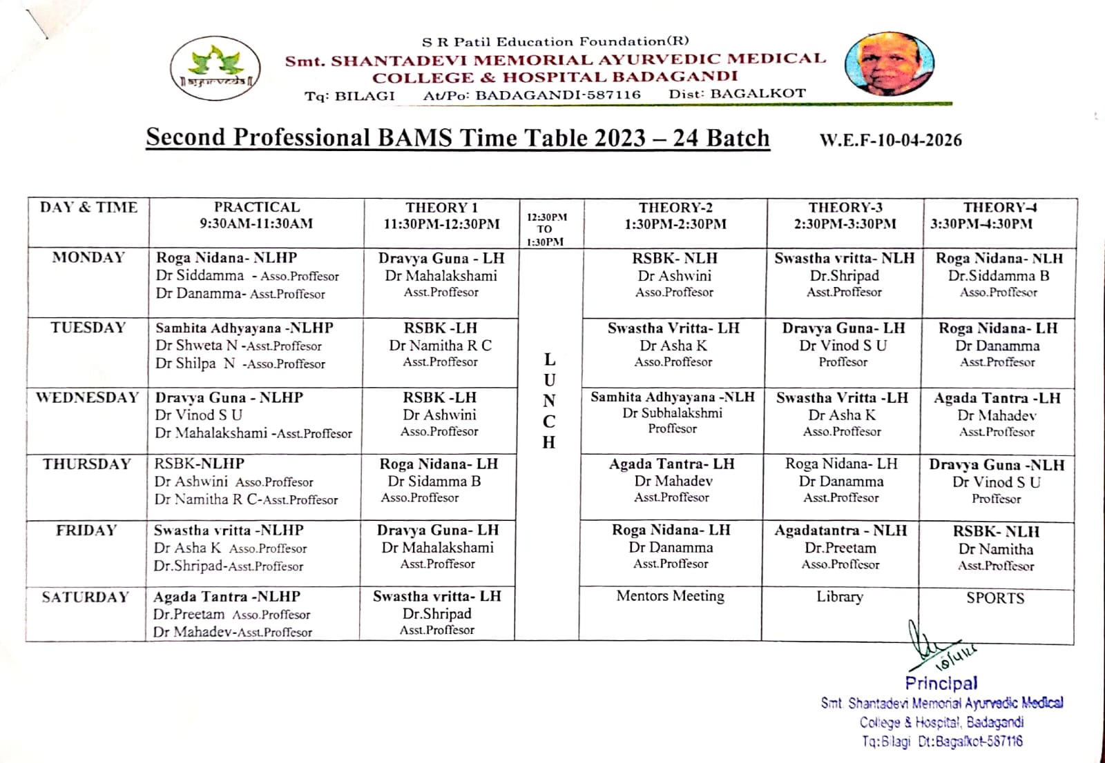 Academic Time Table